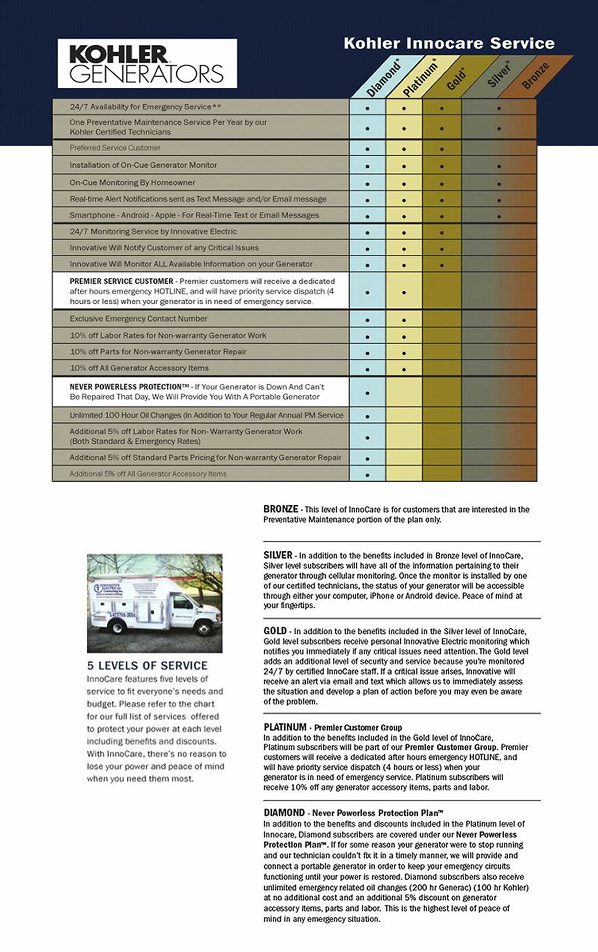 *Two year commitment required in order to receive 50% discount on first year. InnoCare Silver Plan or Higher. New KOHLER maintenance and monitoring customers only. Innovative reserves the right to rescind the discount at any time, for any reason.