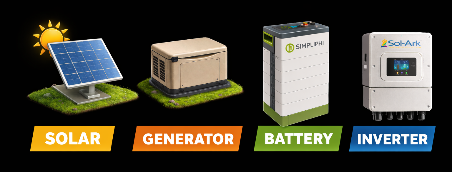 Contact us today to discuss standby generators, solar integration, SimpliPhi battery storage, Sol-Ark inverter systems, and complete Energy Ecosystem installation.